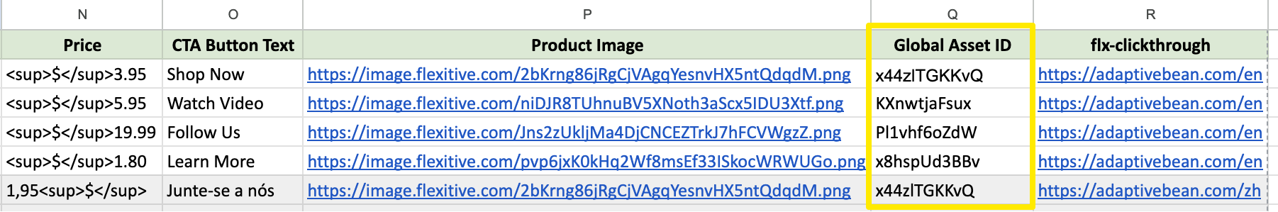 To add the Global Asset to your feed, enter the Global Asset design ID into the appropriate column in your data feed.
